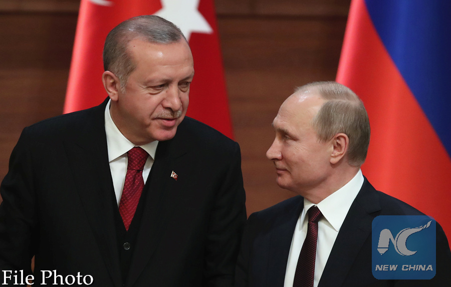 MOSCOW, May 29 (Xinhua) -- Russian President Vladimir Putin and his Turkish counterpart Recep Tayyip Erdogan on Tuesday once again emphasized the importance of a political settlement of the Syrian crisis.
