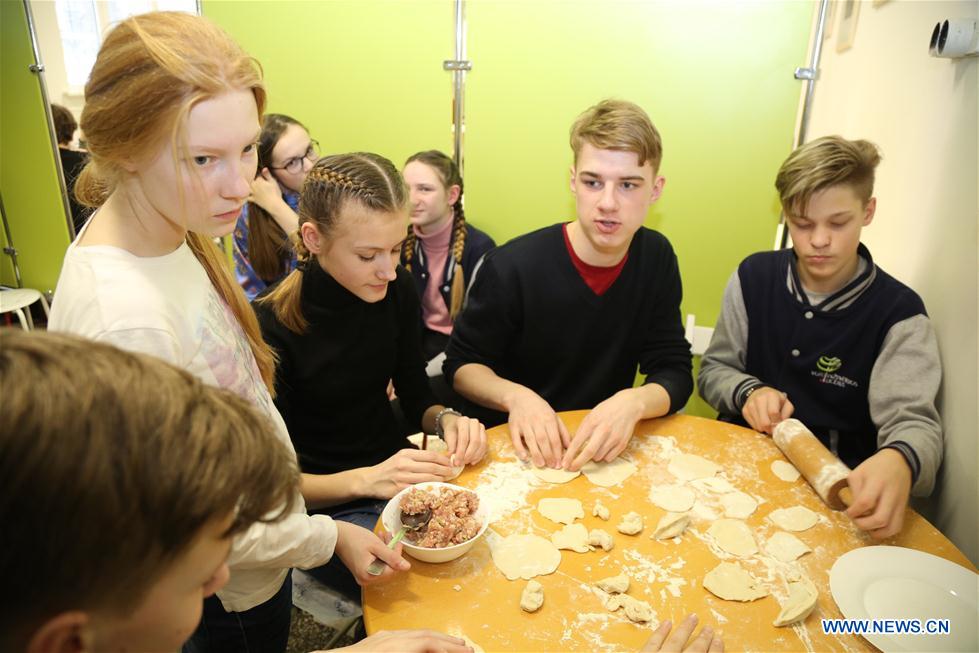 Students of the Confucius Institute at the Vilnius University make dumplings in Vilnius, Lithuania, on Feb. 13, 2018. In recent years, a surge in the learning of the Chinese language has been observed around the world. Confucius institutes and classrooms worldwide play an undeniable role in the process of bringing the Chinese language and culture closer to the international community.