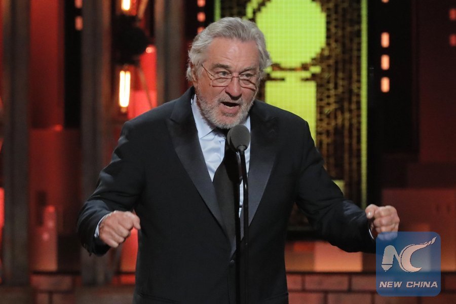 NEW YORK, June 11 (Xinhua) -- The Tony Awards, the highest honor for Broadway, witnessed additional drama Sunday night when Hollywood legend Robert De Niro dropped an expletive about U.S. President Donald Trump, triggering wide controversy.