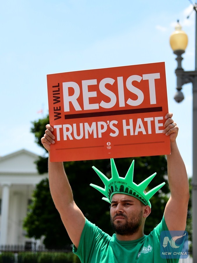 WASHINGTON, June 30 (Xinhua) -- From coast to coast, in the rain or under the burning sun, tens of thousands of Americans marched and rallied across the country to protest the Trump administration's "zero tolerance" immigration policy resulting in over 2,000 children separated from their families who crossed the border illegally.