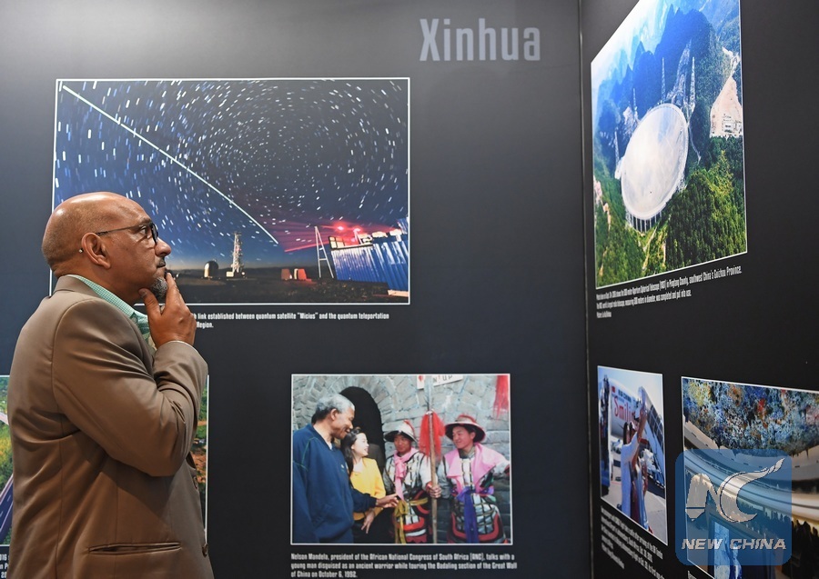 Media delegates view photos at the second edition of BRICS Media Joint Photo Exhibition in Cape Town, South Africa, July 18, 2018.(Xinhua/Chen Cheng)