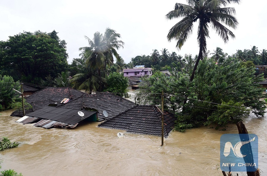 Photo taken on Aug, 9, 2018 shows submerged houses due to heavy rains in Idukki, the southern Indian state of Kerala. (Xinhua/Stringer)