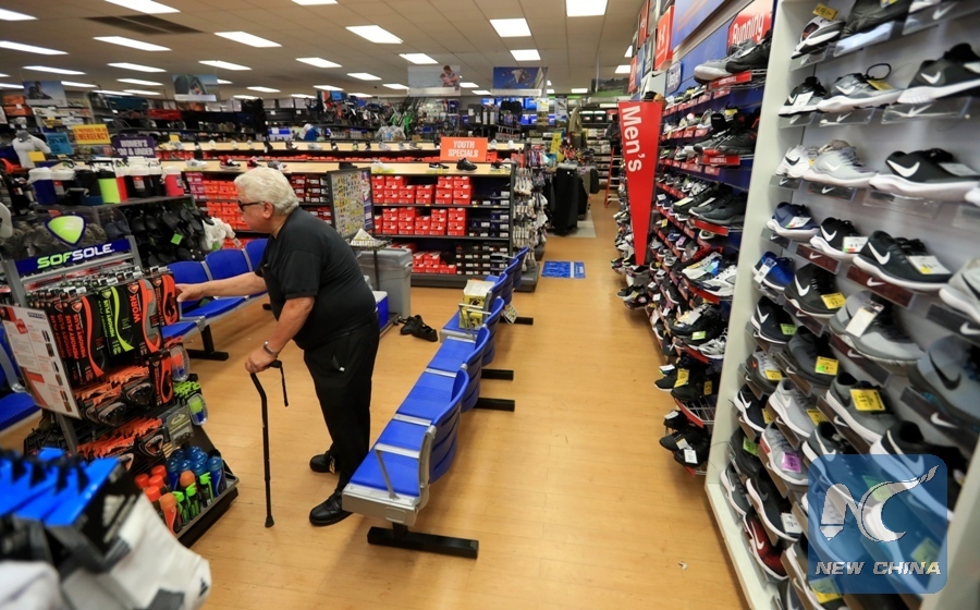A senior shops at a sporting goods store in Alhambra, Los Angeles County, the United States, Aug. 1, 2018. TO GO WITH Feature: U.S. trade offensive against China hits American sports industry (Xinhua/Li Ying)