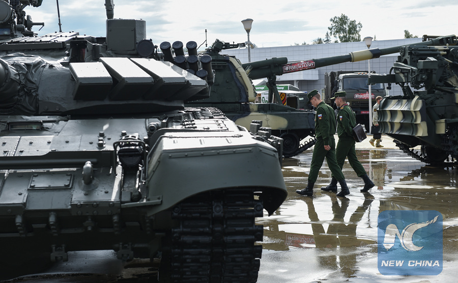 MOSCOW, Aug. 24 (Xinhua) -- Russia's state-owned arms supplier Rosoboronexport has signed 15 contracts worth over 20.3 billion rubles (about 300 million U.S. dollars) at the ongoing Army 2018 defense exhibition being held in Kubinka near Moscow.
