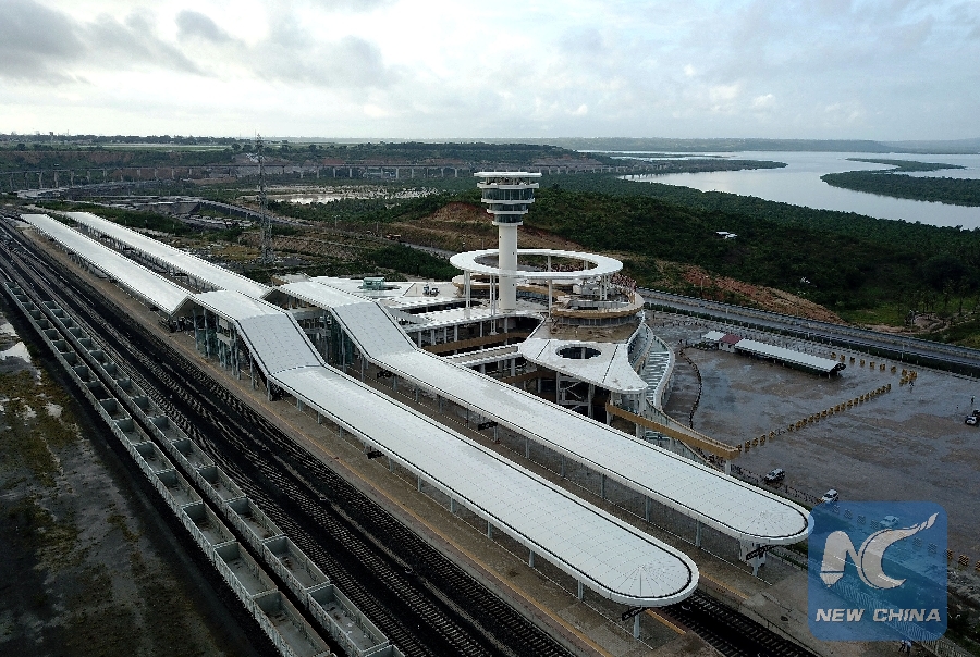 Aerial photo taken on June 2, 2018 shows the Mombasa railway station in Mombasa, Kenya. The China-funded Mombasa-Nairobi Standard Gauge Railway is estimated to have boosted the African country's GDP by 1.5 percent and have provided nearly 50,000 jobs to locals. (Xinhua/Wang Teng)
