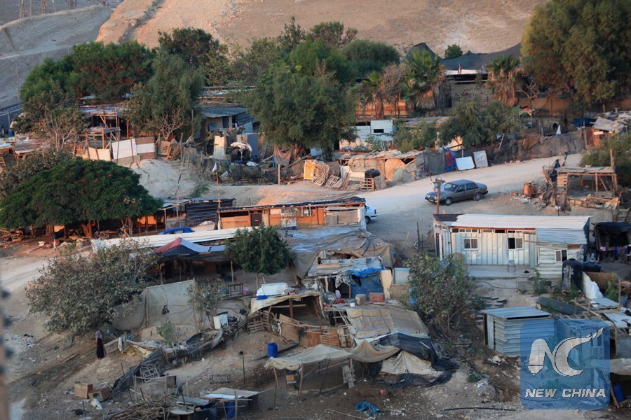 Photo taken on Sept. 17, 2018 shows a general view of the Bedouin community of Khan al-Ahmar, located between the West Bank city of Jericho and Jerusalem. Khan al-Ahmar is a Bedouin community of some 200 people, which was built without permission, according to the Israeli authorities. The Israeli High Court reached on May 24 a verdict to raze the Bedouin village of Khan al-Ahmar. (Xinhua/Mamoun Wazwaz)