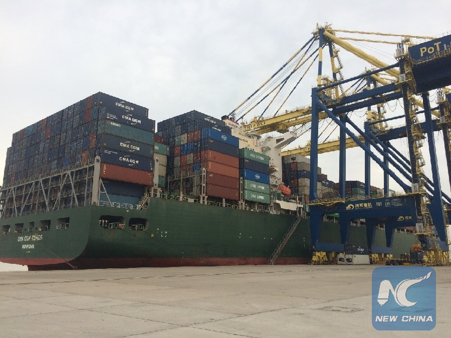 BEIRUT, Oct. 9 (Xinhua) -- A huge container ship named CMA CGM Congo arrived at Lebanese port of Tripoli on Tuesday to open a new shipping line between China and the port.