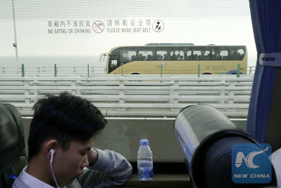 HONG KONG, Oct. 24 (Xinhua) -- "It's such a huge construction! Remarkable!" said Hong Kong resident Lau To-dong, who was looking forward to riding on the world's longest cross-sea bridge.