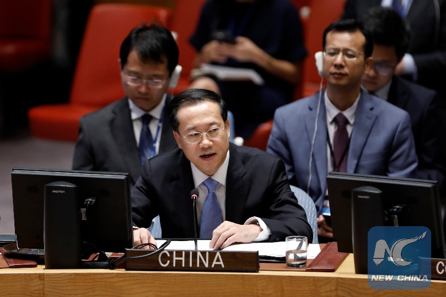 File Photo: Chinese Permanent Representative to the United Nations Ma Zhaoxu speaks at the UN Security Council's open debate on the Middle East situation at UN headquaters in New York, on July 24, 2018. (Xinhua/Li Muzi)