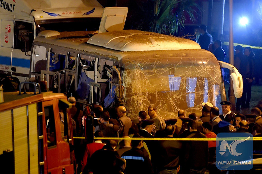 CAIRO, Dec. 28 (Xinhua) -- Two Vietnamese tourists were killed Friday when a home-made bomb hit a bus carrying foreign tourists in Marioutiya area near the Giza Pyramids, Egyptian interior ministry said.