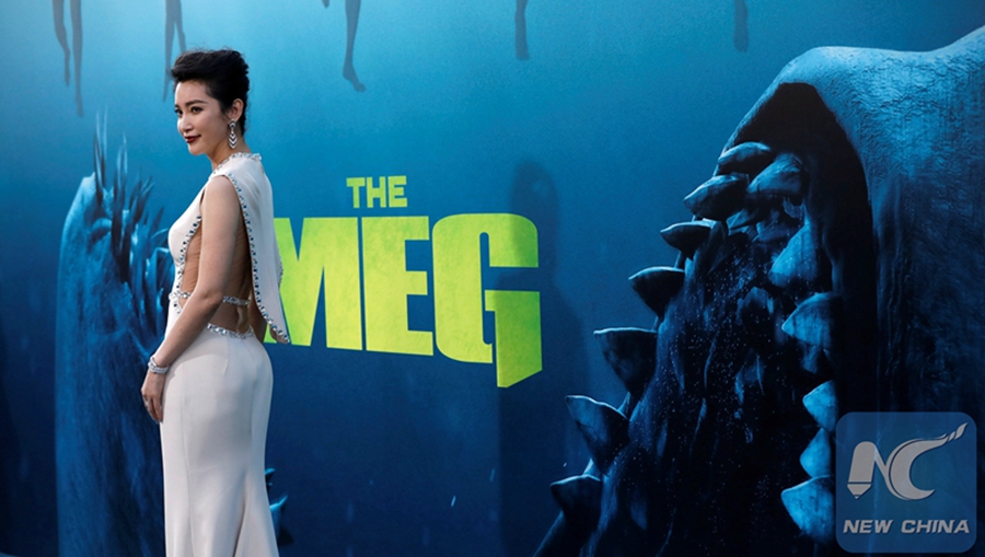 Cast member Bingbing Li poses at the premiere for "The Meg" in Los Angeles, California, U.S., Aug. 6, 2018. (REUTERS/Mario Anzuoni)