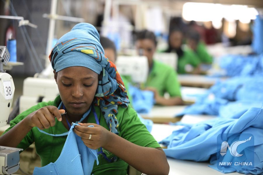 File photo shows a worker goes about her work at Bole Lemi Industrial Park in Addis Ababa, capital of Ethiopia, April 6, 2017. (Xinhua/Michael Tewelde)