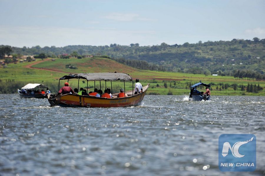 File photo shows tourists take boats at the north shore of Lake Victoria in Jinja of Uganda, where is the source of the River Nile, Oct. 24, 2009. (Xinhua/Liu Chan)