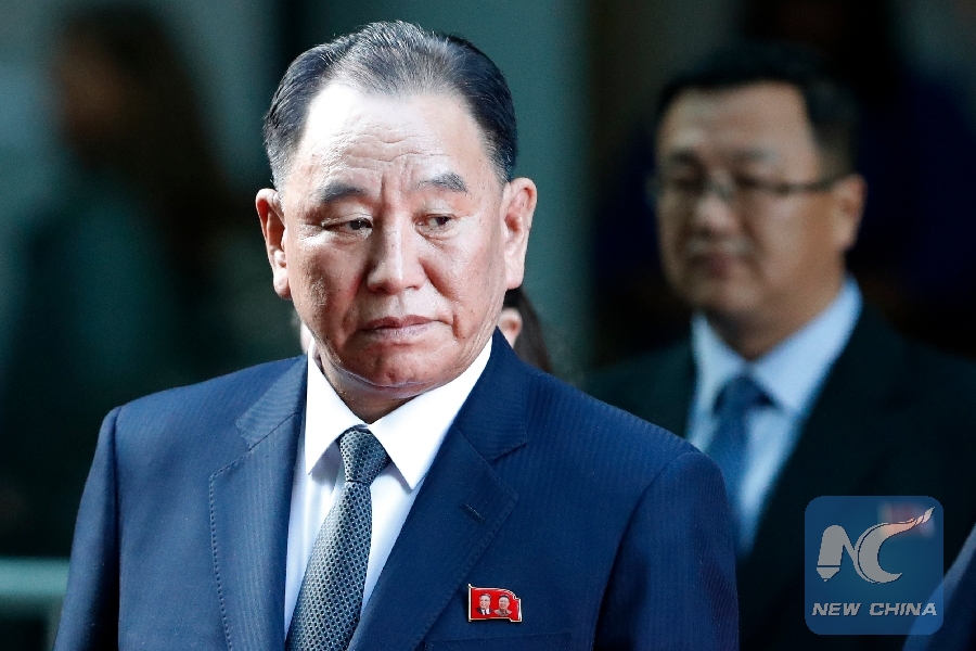 File Photo: Kim Yong Chol, vice chairman of the ruling Workers' Party of Korea (WPK) Central Committee of the Democratic People's Republic of Korea (DPRK), leaves a hotel in New York, the United States, May 30, 2018. (Xinhua/Li Muzi)