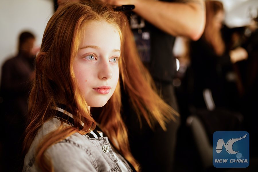 A model prepares to attend the fashion show of Maisonnoee during Berlin Fashion Week Autumn/Winter 2019/2020 in Berlin, capital of Germany, on Jan. 15, 2019. (Xinhua/Binh Truong)