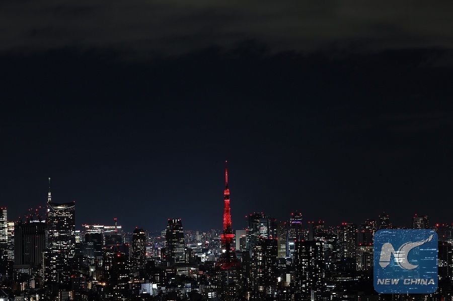 TOKYO, Feb. 4 (Xinhua) -- As the Chinese people cheer for the Lunar New Year Eve, the iconic scenic spot of Tokyo Tower in the Japanese capital was lit up Monday evening in Chinese red as a symbol of promotion of China-Japan relations.
