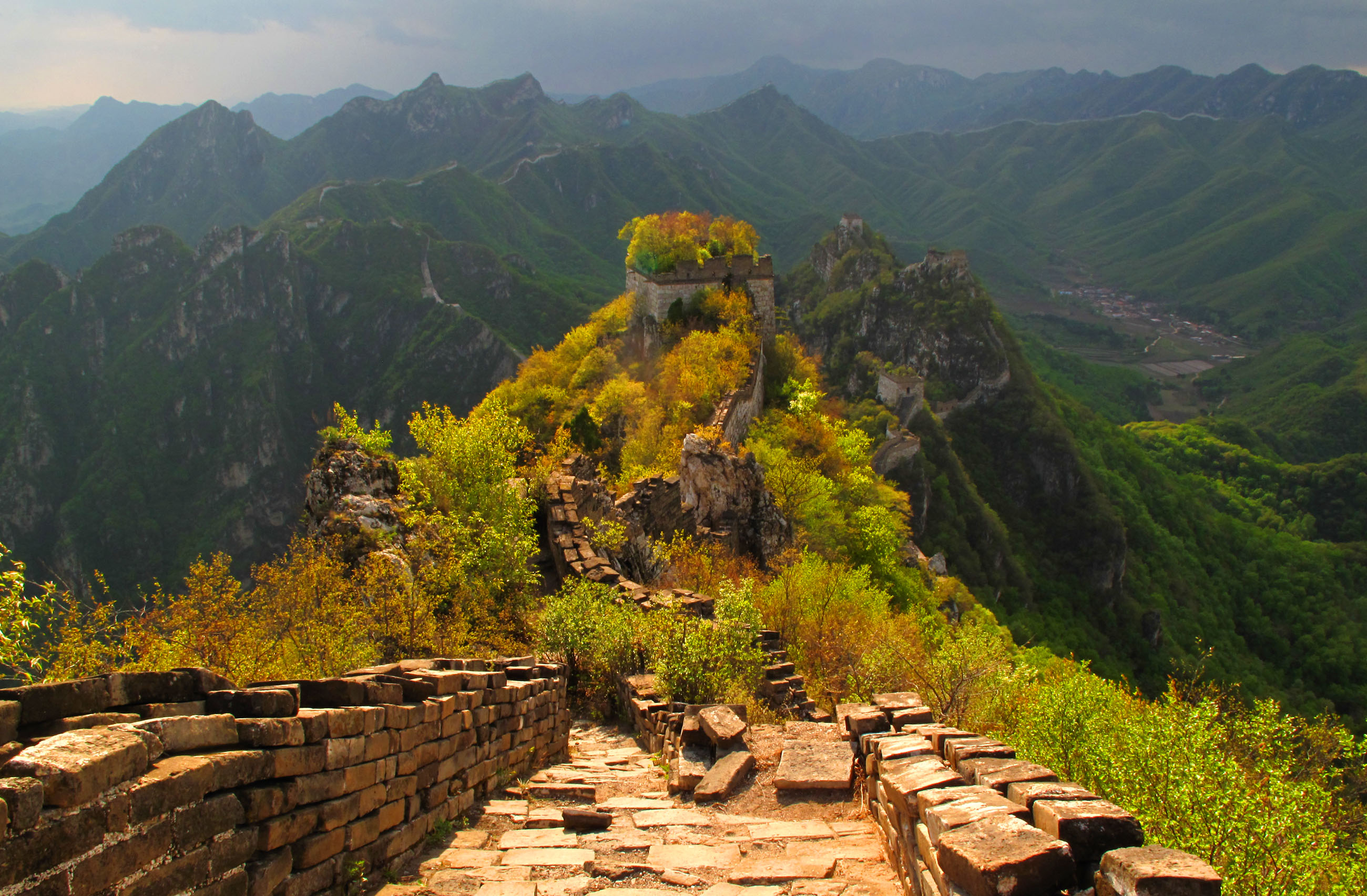 With a total length of 7,952 meters, the Jiankou Great Wall was built during the Ming Dynasty (1368-1644). Located on steep mountains, the section of the Great Wall was once neglected and became damaged over time.