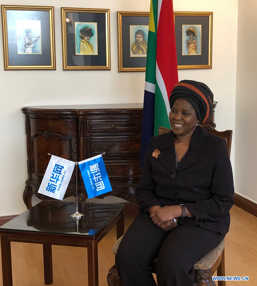 South African Ambassador to China Dolana Msimang takes an exclusive interview with Xinhuanet in Beijing, capital of China, Feb. 21, 2018. (Xinhuanet photo)