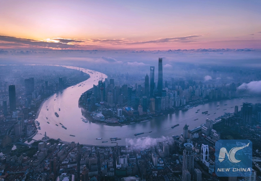 Aerial photo taken on June 21, 2018 shows morning view of the Lujiazui area in Pudong of Shanghai, east China. (Xinhua/Ren Long)