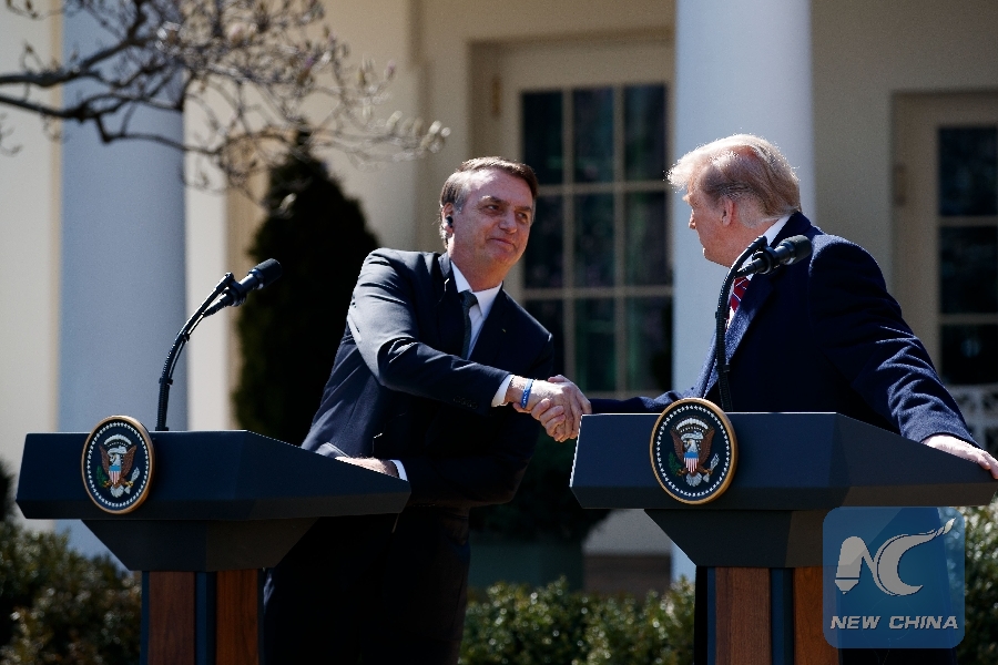 WASHINGTON, March 19 (Xinhua) -- U.S. President Donald Trump on Tuesday indicated that he may support Brazil to join in the North Atlantic Treaty Organization (NATO) and the Organization for Economic Co-operation and Development (OECD).