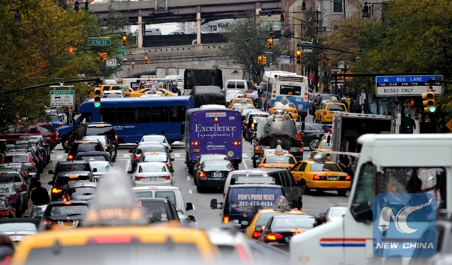 File Photo: Cars are seen in a traffic jam on the 1st Ave in Manhattan, New York, the United States, Oct. 31, 2012. (Xinhua/Shen Hong)