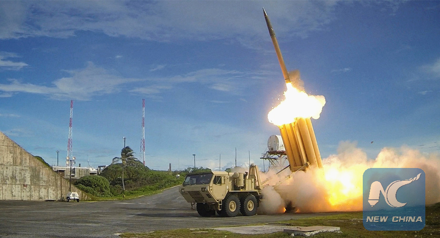 A Terminal High Altitude Area Defense (THAAD) interceptor is launched during a successful intercept test, in this undated handout photo provided by the U.S. Department of Defense.