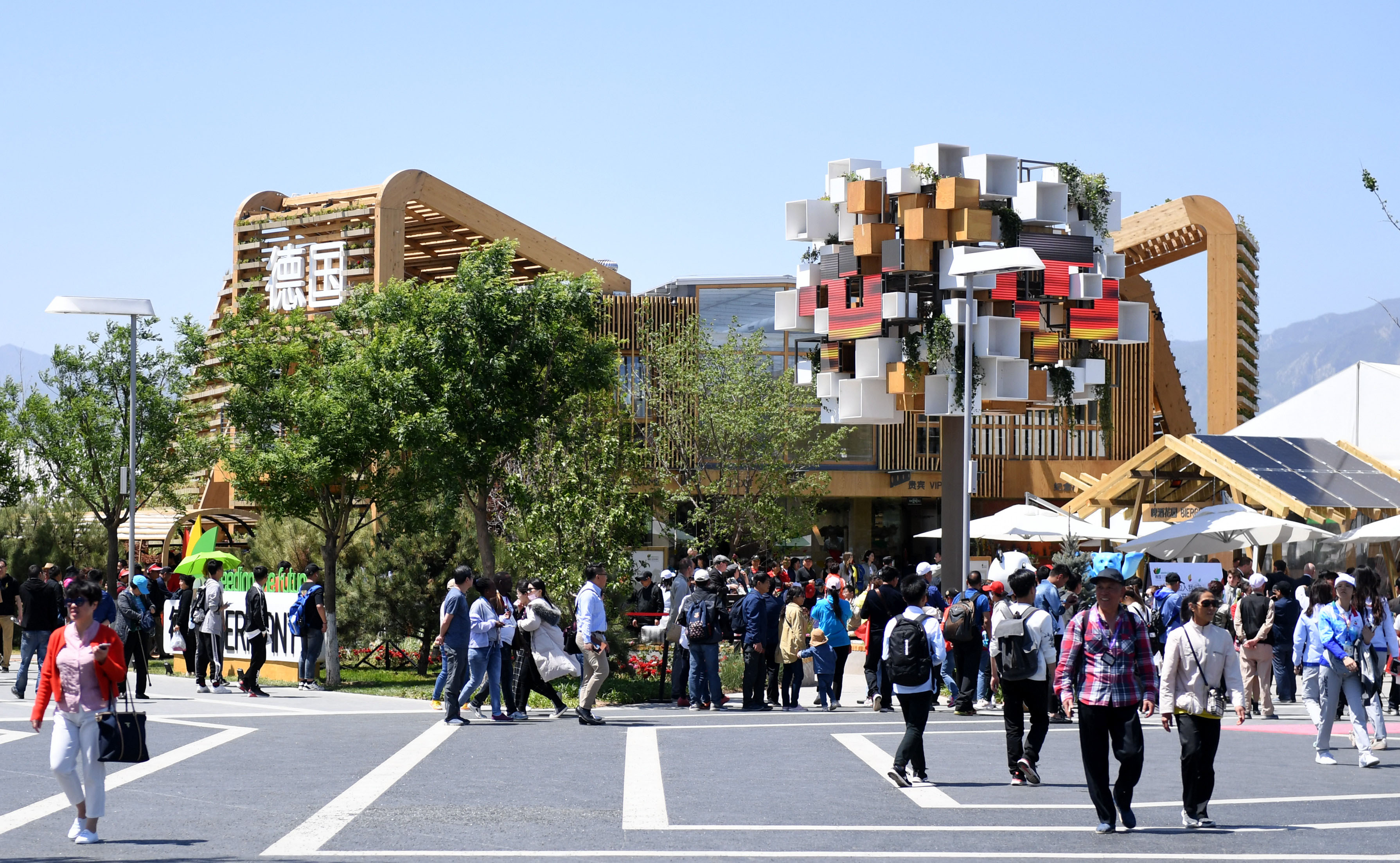 Visitors are seen on the Germany Day of Beijing International Horticultural Exhibition in Beijing, capital of China, on May 13, 2019. (Xinhua)