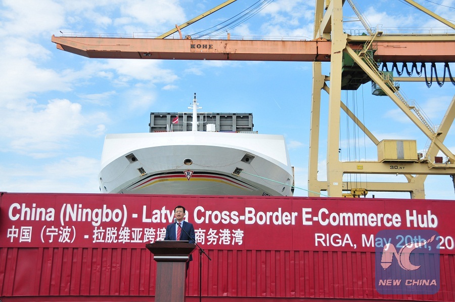 RIGA, May 21 (Xinhua) -- The China (Ningbo)-Latvia Cross-border E-commerce Hub was launched in a ceremony at the Baltic Container Terminal in the Latvian capital city Riga on Monday.