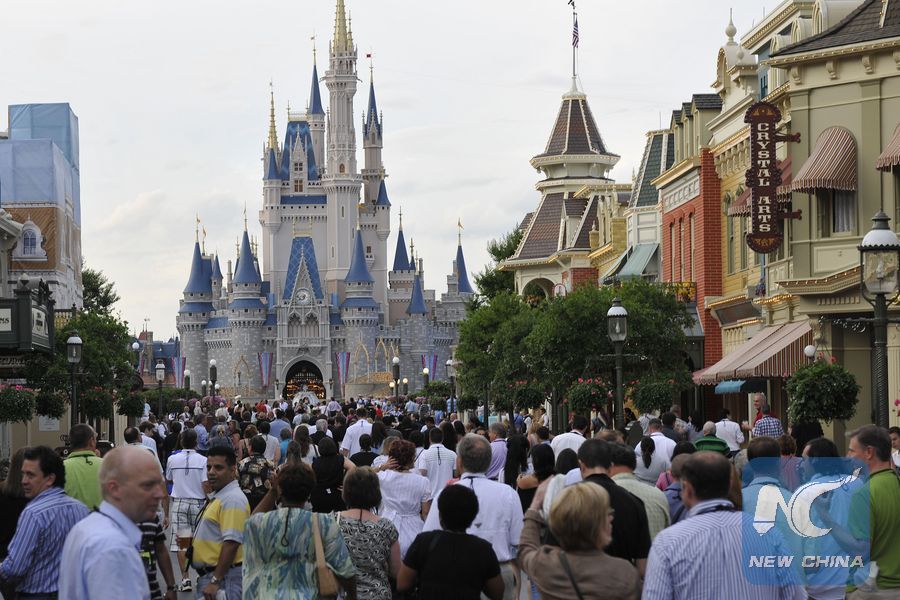 People visit Disney's Magic Kingdom Park during a welcome event prior to the 2010 International POW WOW in Orlando, Florida, the United States, May 16, 2010. The annual premier international marketplace for travel to the United States gathers over 1,000 U.S. travel organizations and worldwide tourism operators.(Xinhua/Zhang Jun)