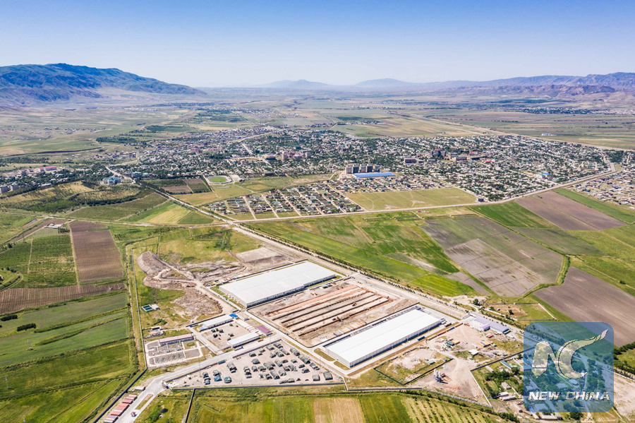 This aerial photo taken on May 24, 2019 shows the textile factories of China's Zhongtai (Dangara) New Silk Road Textile Industry Company in Dangara, Tajikistan. (Xinhua/Zhang Ruoxuan)