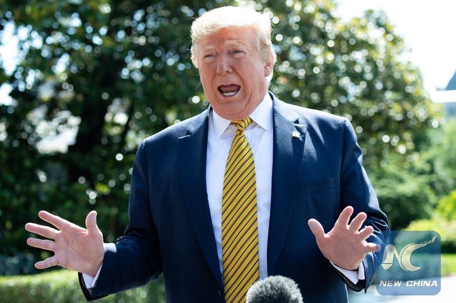 U.S. President Donald Trump speaks to the media prior to departing the White House on June 22, 2019, as he travels to Camp David, Maryland. (Xinhua/AFP)