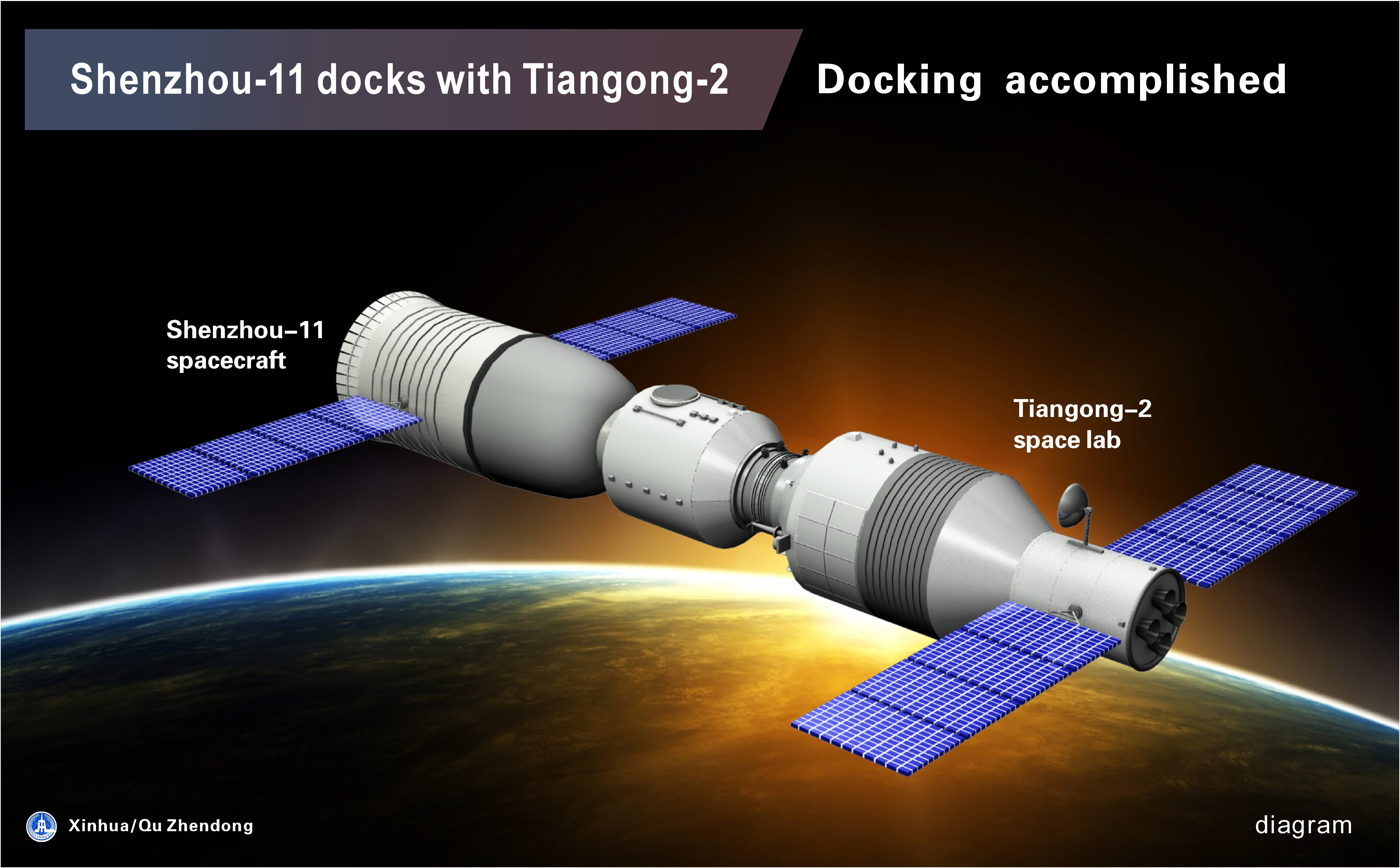 Tiangong-2 docked with both the Shenzhou-11 manned spaceship and Tianzhou-1 cargo spacecraft.