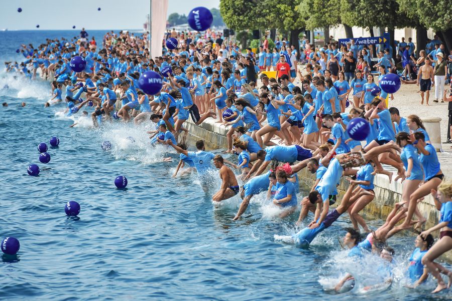 People jump into the Adriatic Sea during the 13th DM Millennium Jump event in Zadar, Croatia, on July 27, 2019. More than 3,000 people participated in the event this year. (Photo by Dino Stanin/Xinhua)