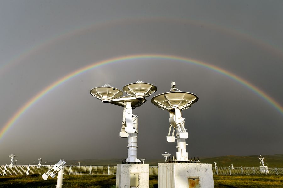 Photo taken on July 27, 2019 shows a rainbow over the Ming'antu observing station of the National Astronomical Observatories of the Chinese Academy of Sciences, in Zhengxiangbai Qi, north China's Inner Mongolia Autonomous Region. (Xinhua/Liu Lei)