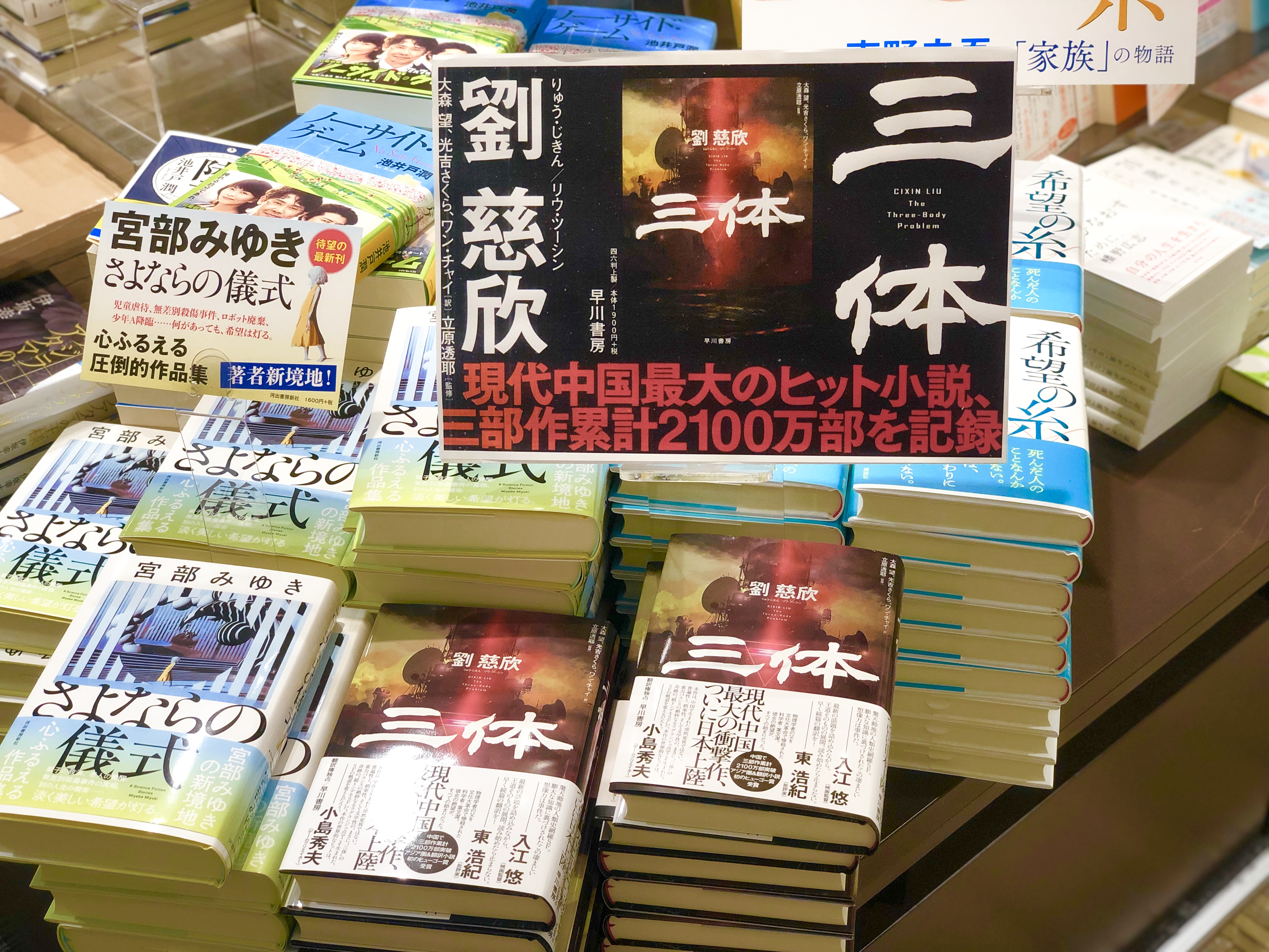 Chinese science fiction "The Three-Body Problem", one of "The Three-Body Trilogy", is on sale at Yurindo bookstore in Meguro of Tokyo, Japan, July 15, 2019. (Xinhua/Guo Wei)
