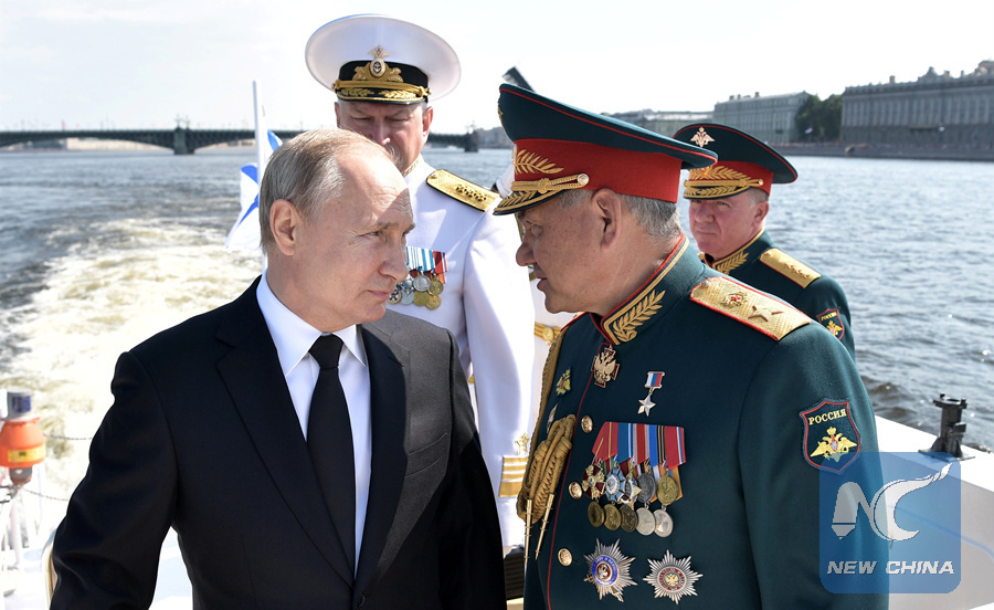 ST. PETERSBURG, Russia, July 28 (Xinhua) -- Russia will build a strong navy to safeguard its national security, President Vladimir Putin said Sunday at the country's annual Navy Day parade.