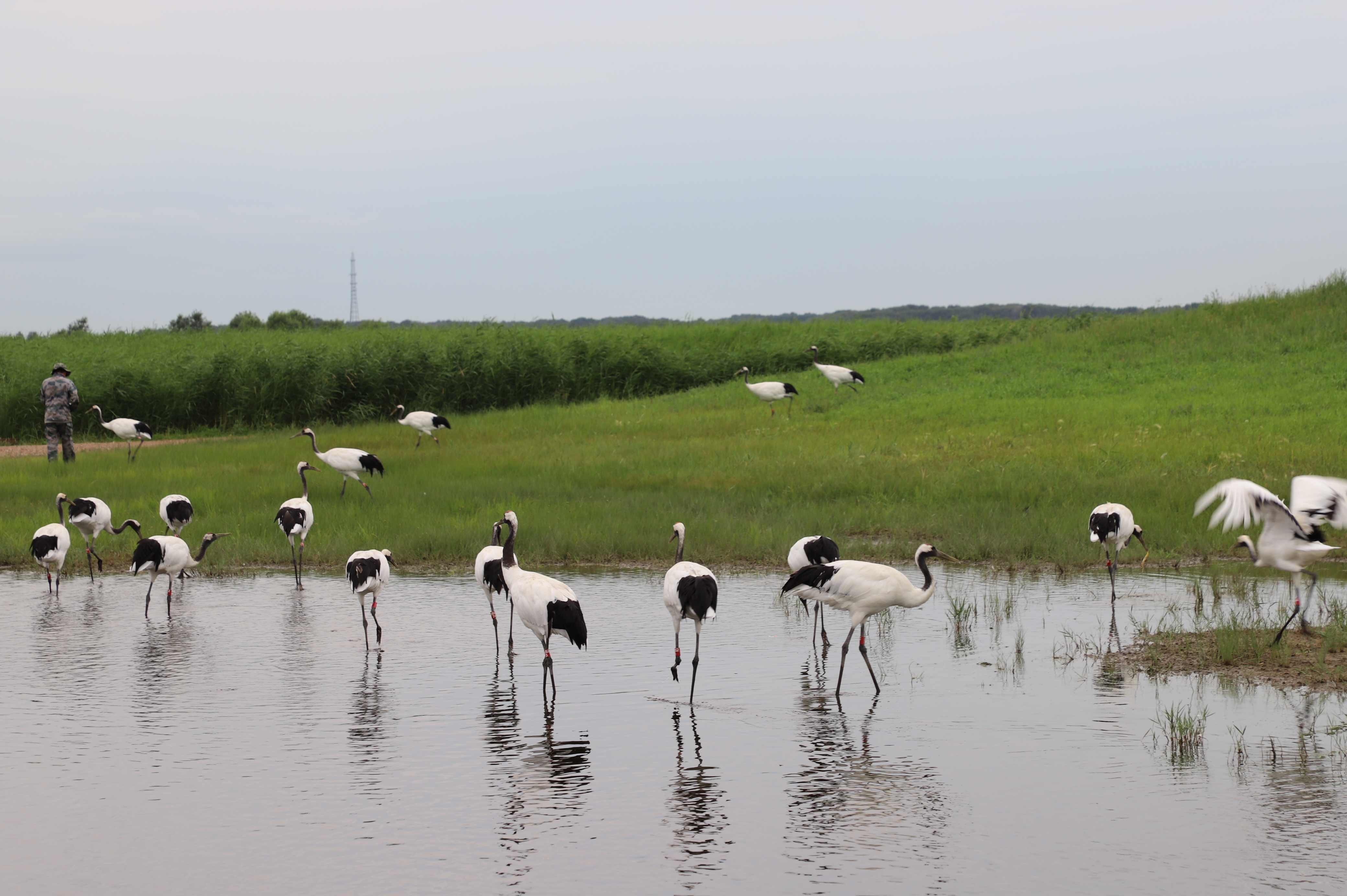 Red-crowned cranes drink water and search for food at Zhalong National Nature Reserve in Qiqihar, northeast China's Heilongjiang Province, July 23, 2019. (Xinhua/Sun Xiaoyu)