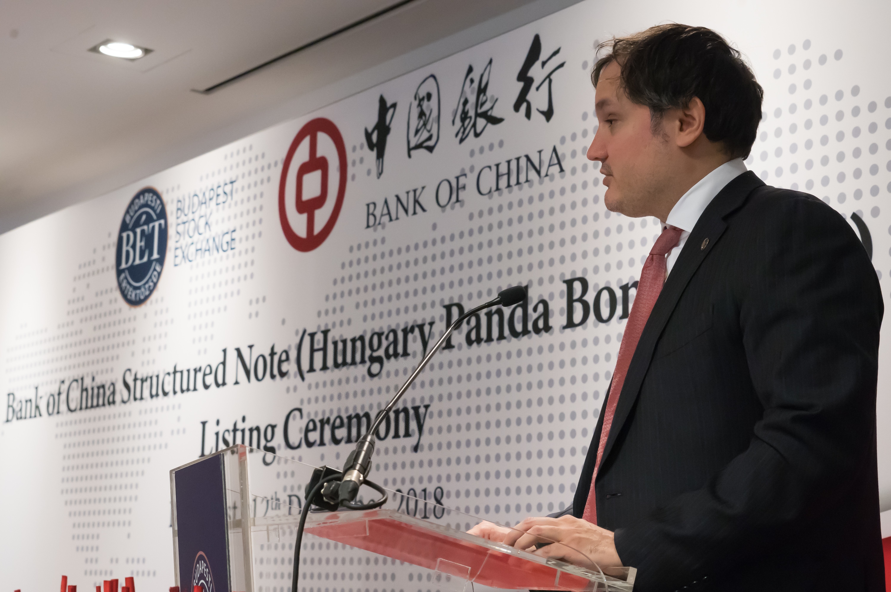 Listing ceremony of Bank of China Structured Note (Hungary Panda Bonds) is held in Budapest, Hungary, Dec. 12, 2018. (Photo by Attila Volgyi/Xinhua)