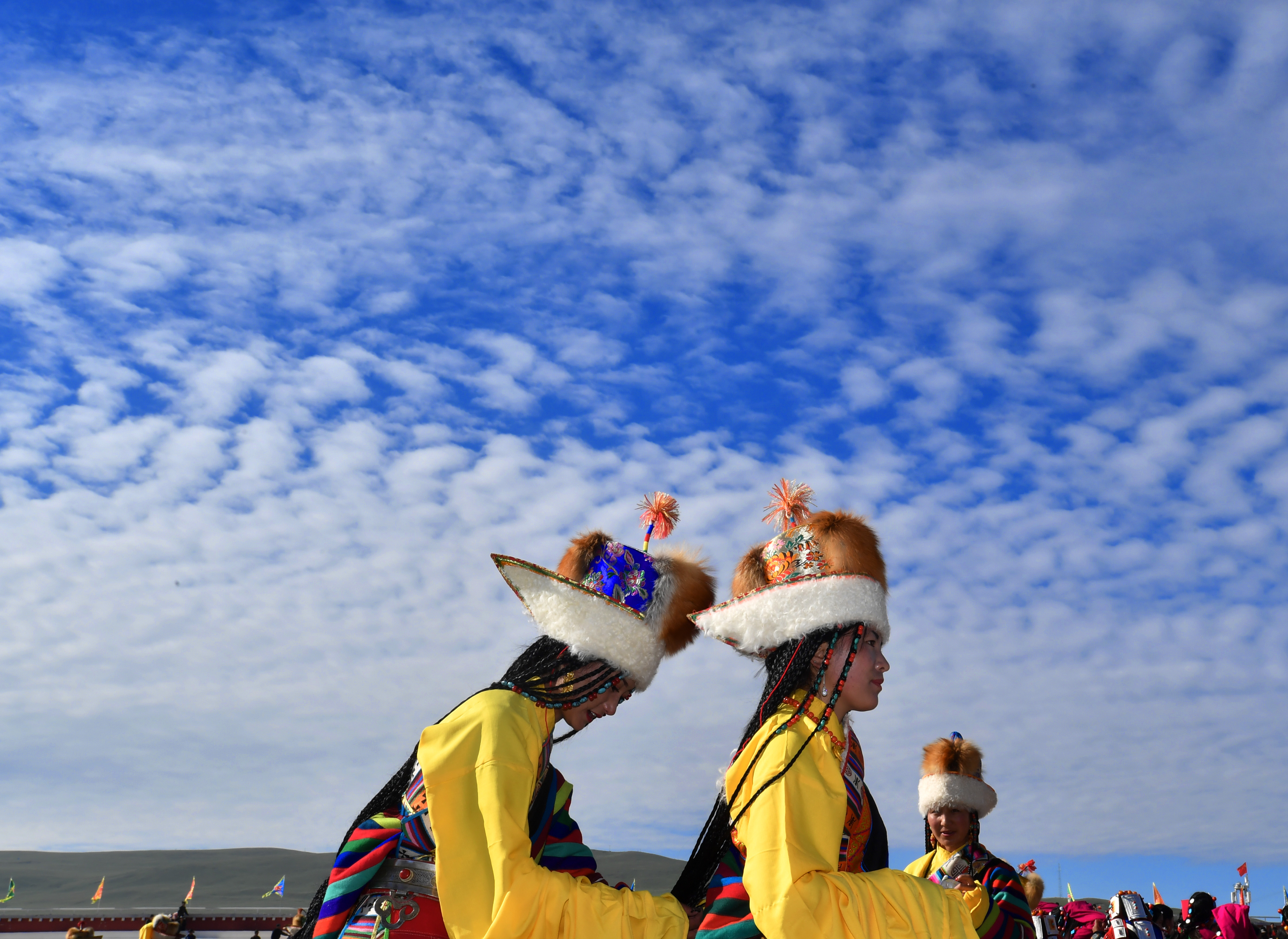 People wearing hats are seen during a horse racing festival in Nagqu City, southwest China's Tibet Autonomous Region. (Xinhua/Chogo)