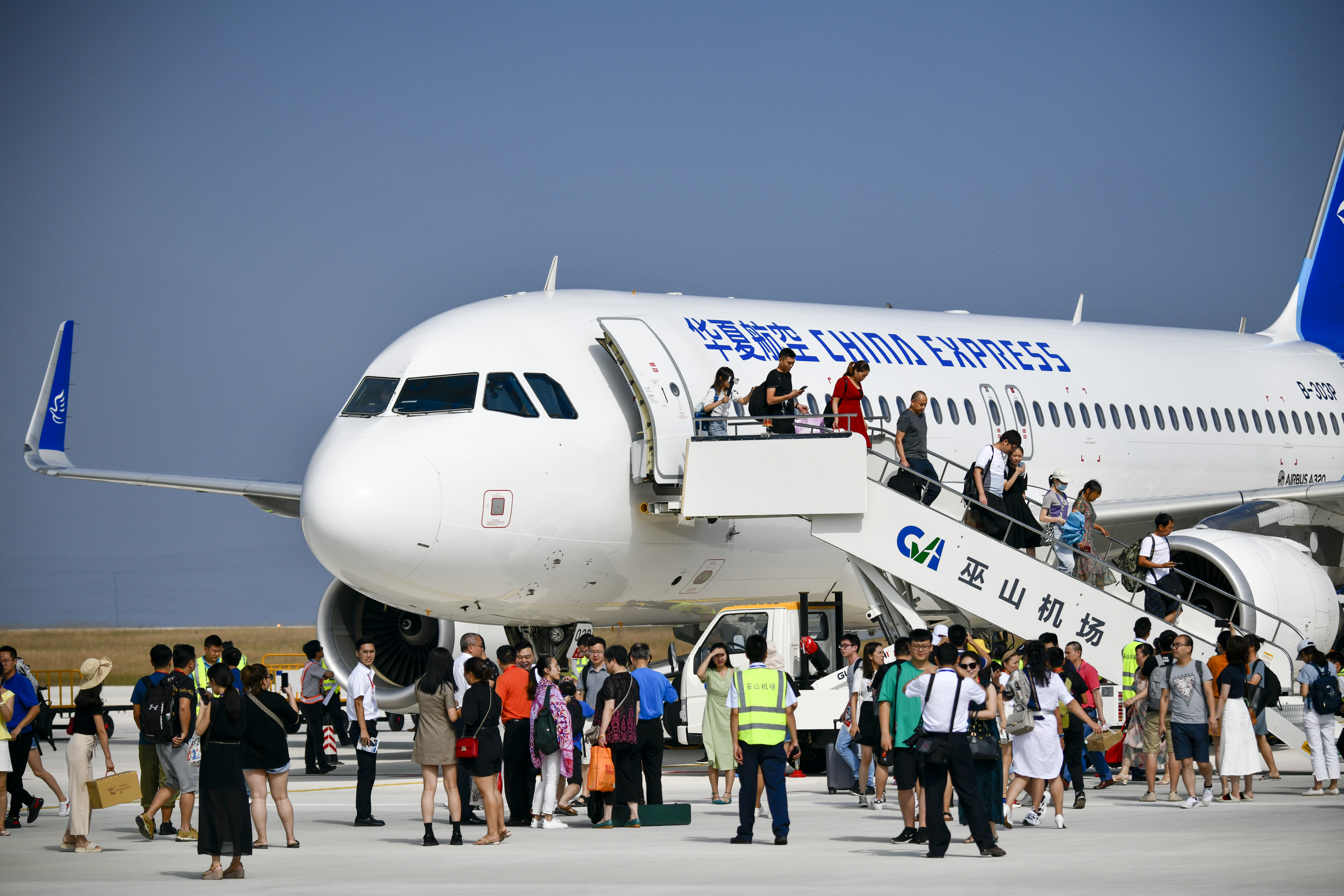 China Express's flight G52685 arrives at the Wushan Airport in Chongqing, southwest China, Aug. 16, 2019. The successful landing of China Express's flight G52685 on the Chongqing Wushan Airport marks the official operation of the airport. (Xinhua/Liu Chan)
