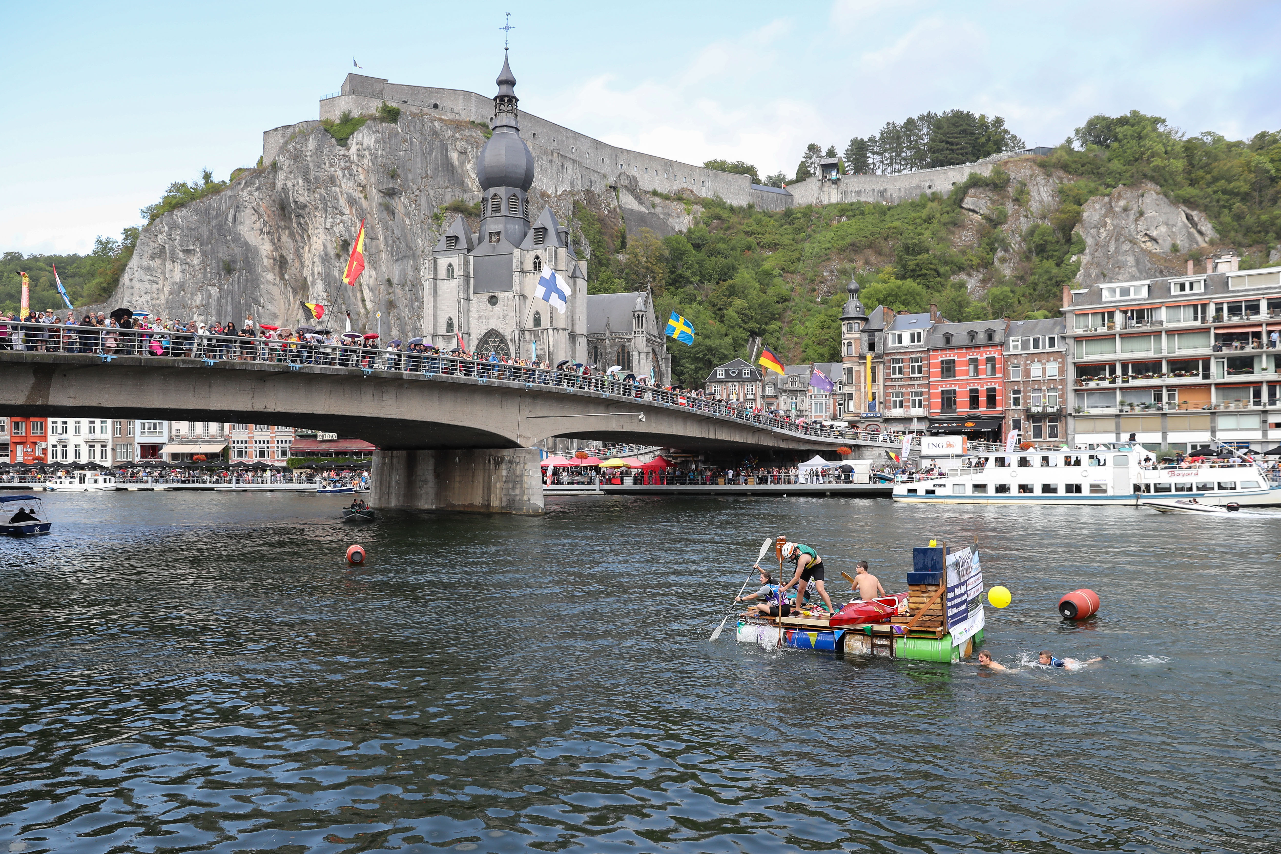 Participants attend the International Bathtub Regatta on the Meuse River in Dinant, Belgium, on Aug. 15, 2019. (Xinhua/Zhang Cheng)