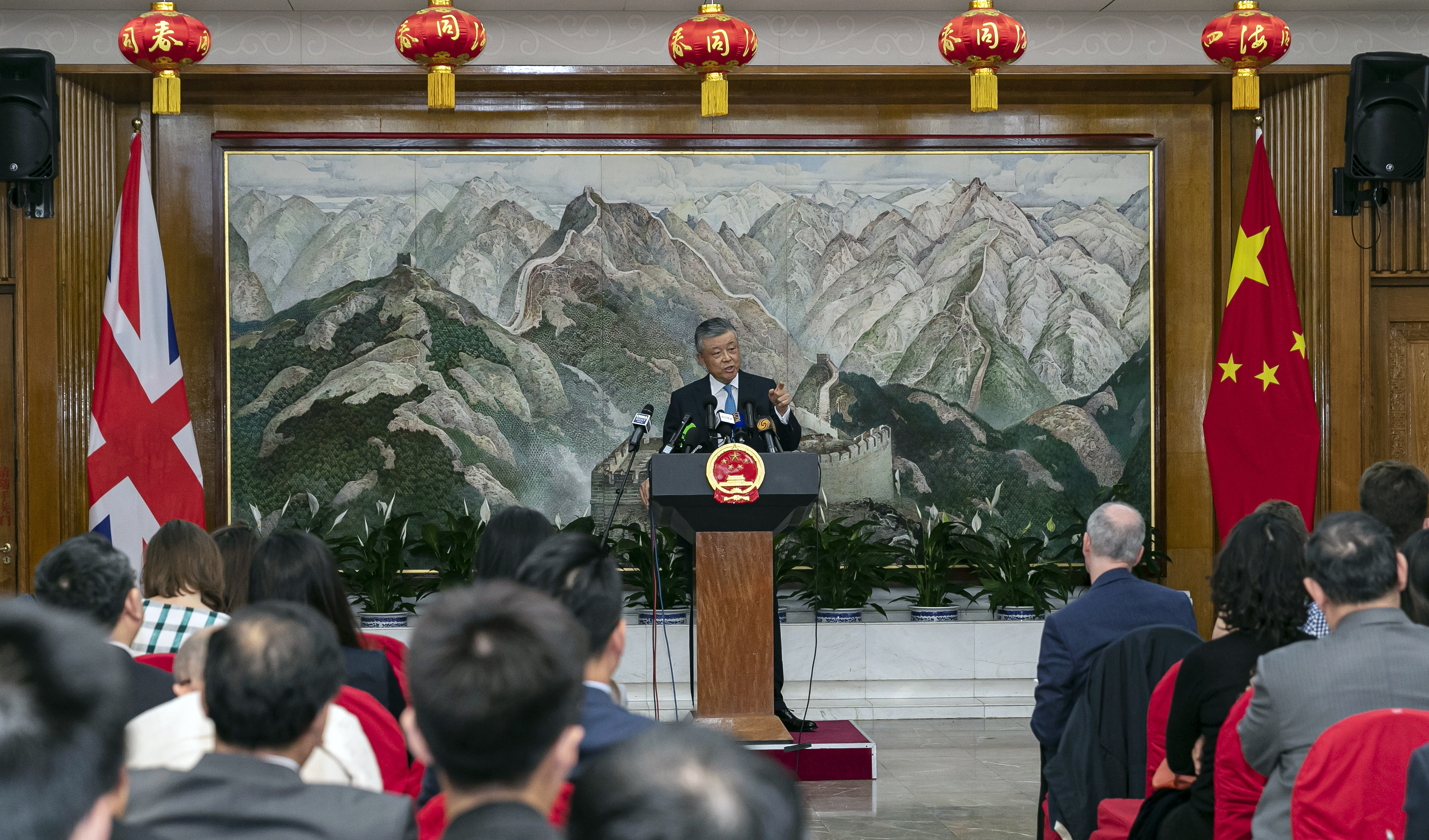 Chinese Ambassador to Britain Liu Xiaoming speaks during a press conference in London, Britain, Aug. 15, 2019. Hong Kong is part of China and foreign forces must stop interfering in Hong Kong's affairs, Liu said on Thursday. Evidence shows that the situation in Hong Kong would not have deteriorated so much had it not been for the interference and incitement of foreign forces, Liu told the press conference at the Chinese Embassy in Britain. (Xinhua/Han Yan)