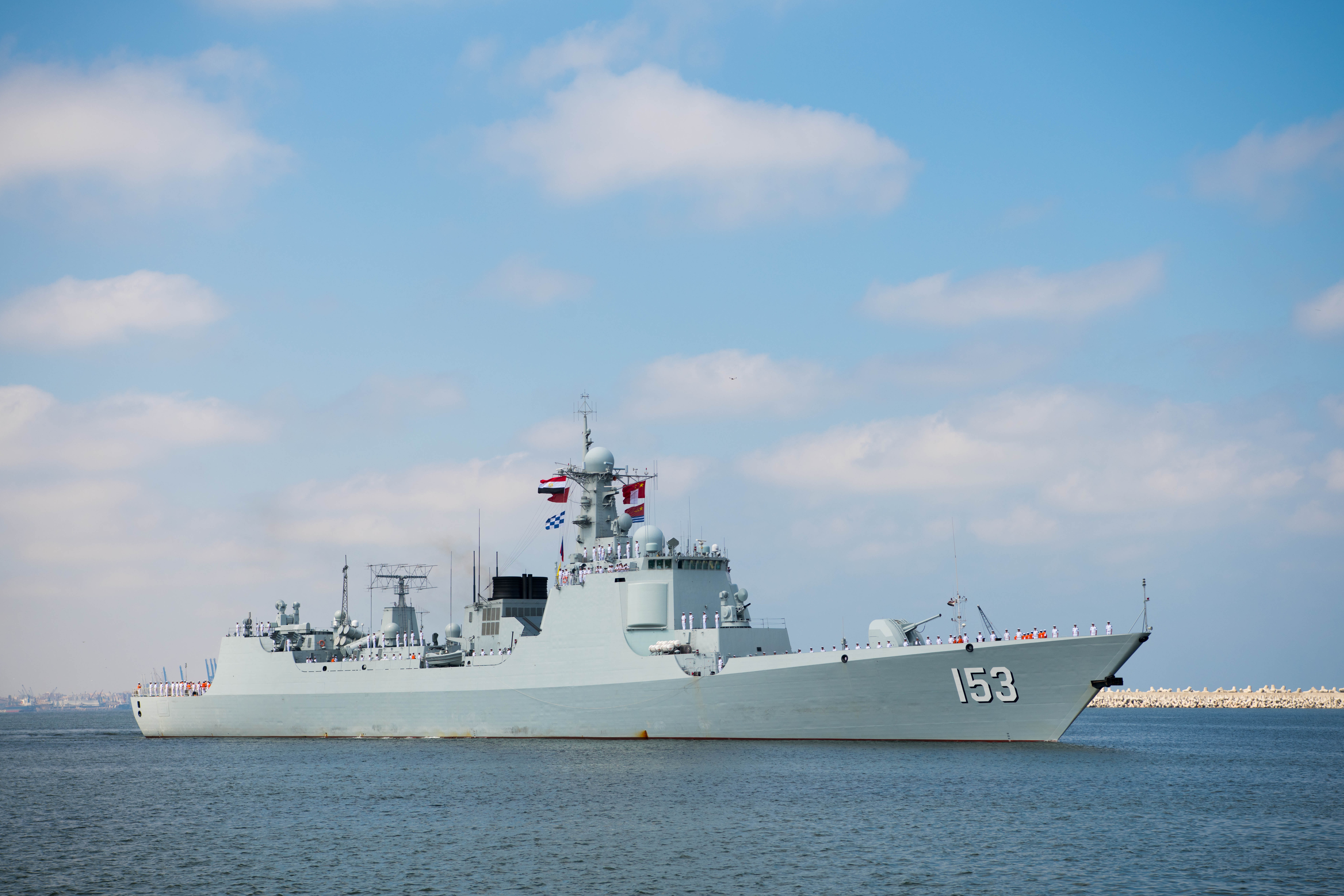 Photo taken on Aug. 16, 2019 shows Chinese missile destroyer "Xi'an" of the 32nd Chinese naval escort fleet in Alexandria, Egypt. (Xinhua/Wu Huiwo)