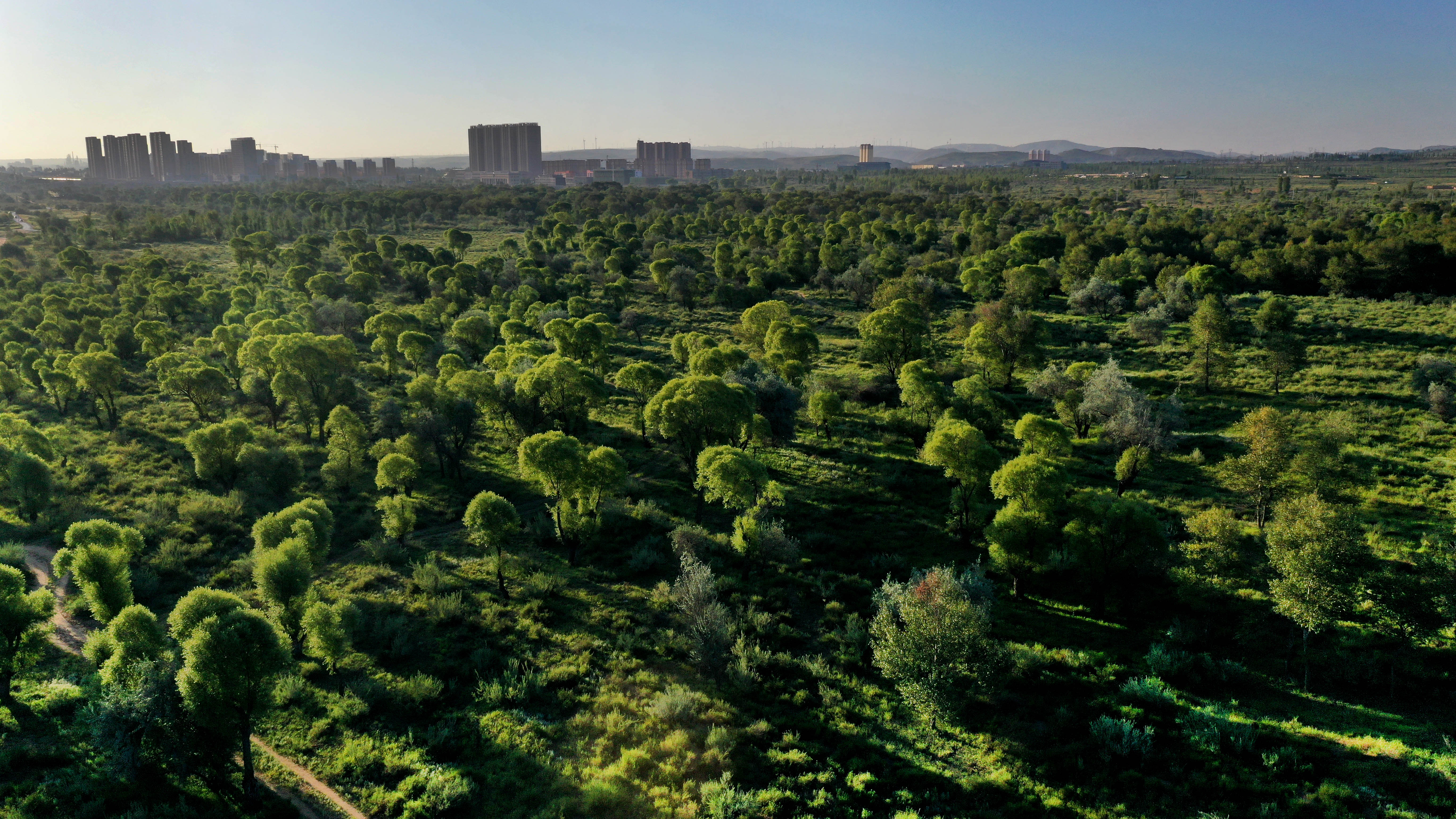 Aerial photo taken on Aug. 16, 2019 shows the scenery at a wetland near Jingbian County in Yulin City, northwest China's Shaanxi Province. (Xinhua/Tao Ming)
