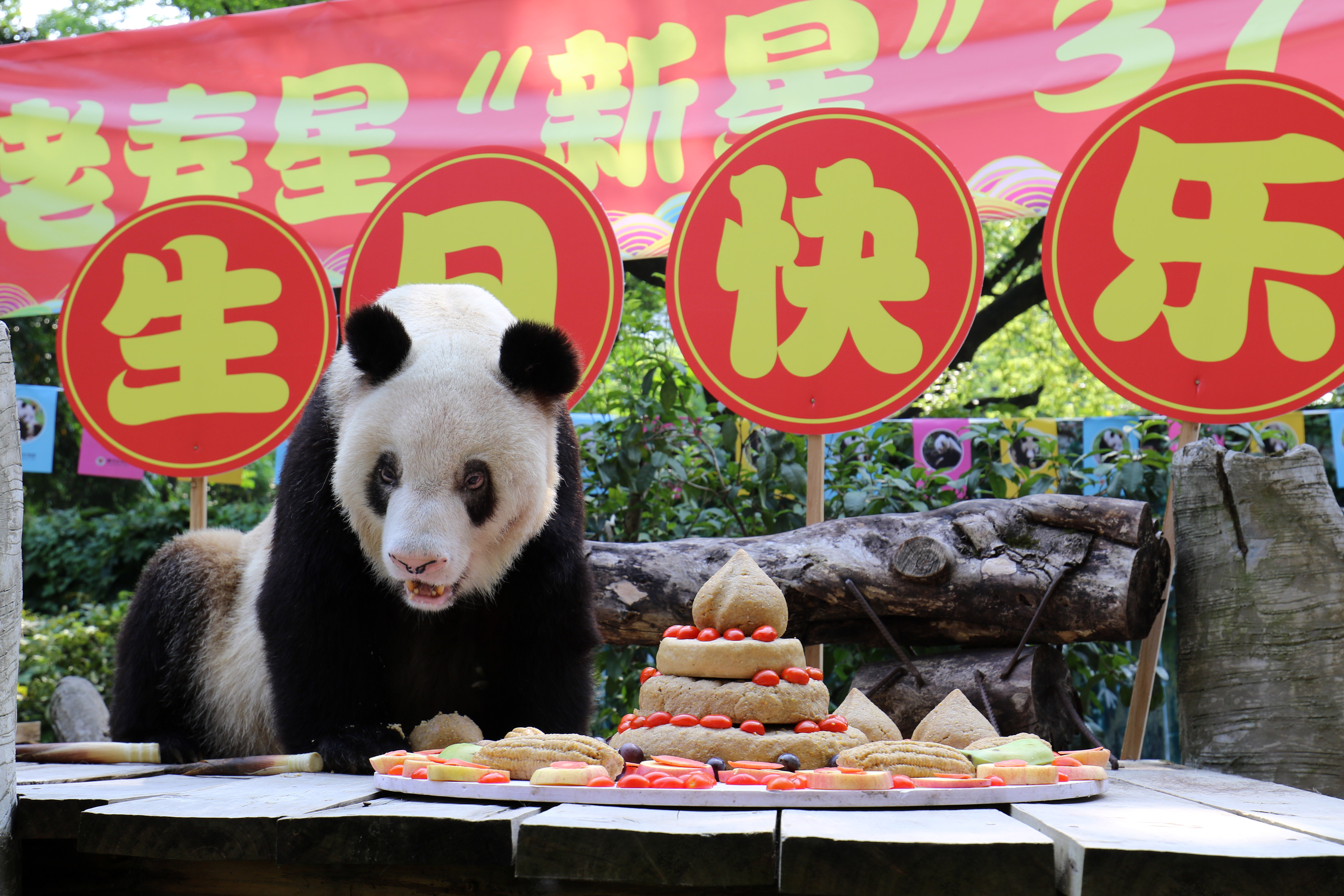 A zoo in southwest China's Chongqing Municipality threw a birthday party for the world's oldest captive giant panda, Xinxing, who turned 37, equivalent to more than 100 human years. (Xinhua/Chongqing Zoo)