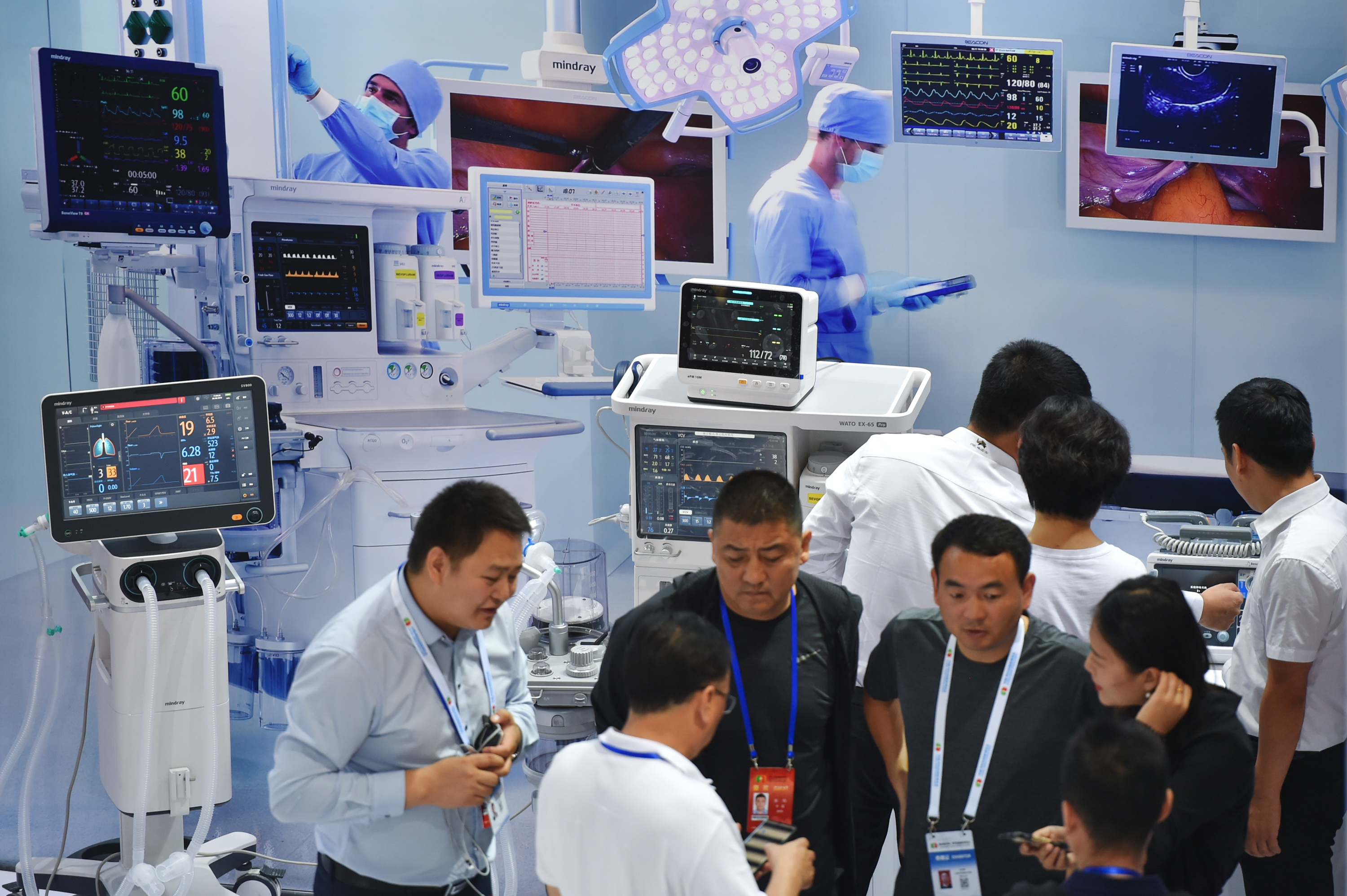 Participants get to learn more information about internet plus healthcare on the expo. (Xinhua/Li Mangmang)