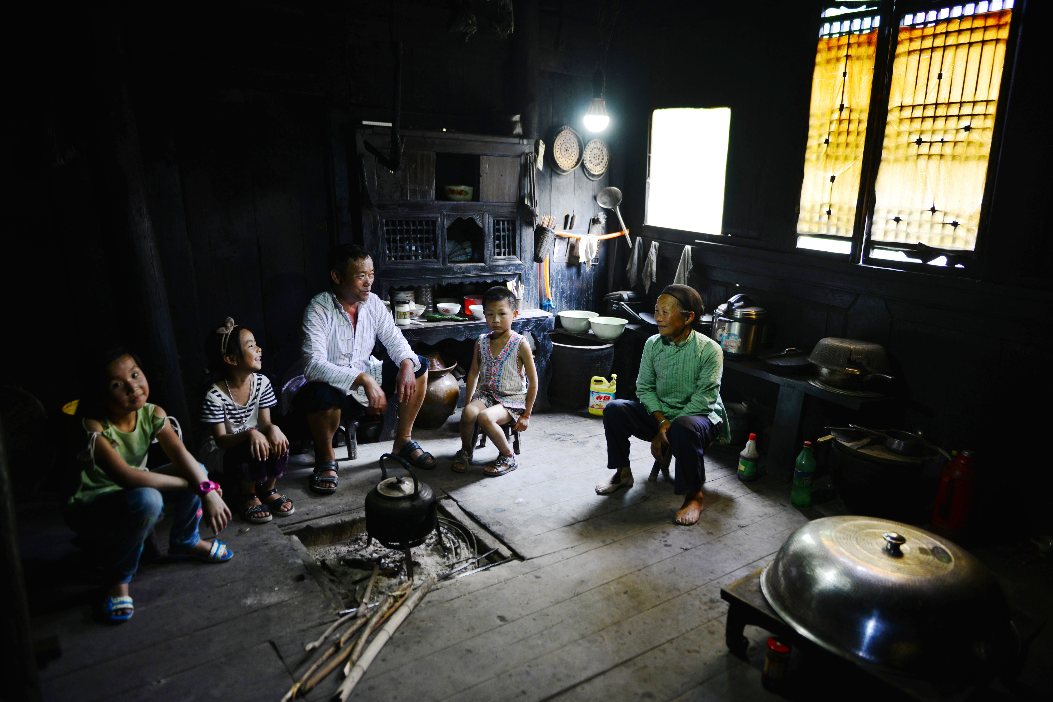 Jiang Tongying (3rd L) visits a family of a student at Hua'ao Village in Jianhe County of Qiandongnan Miao and Dong Autonomous Prefecture, southwest China's Guizhou Province, June. 29, 2016. (Xinhua/Yang Wenbin)