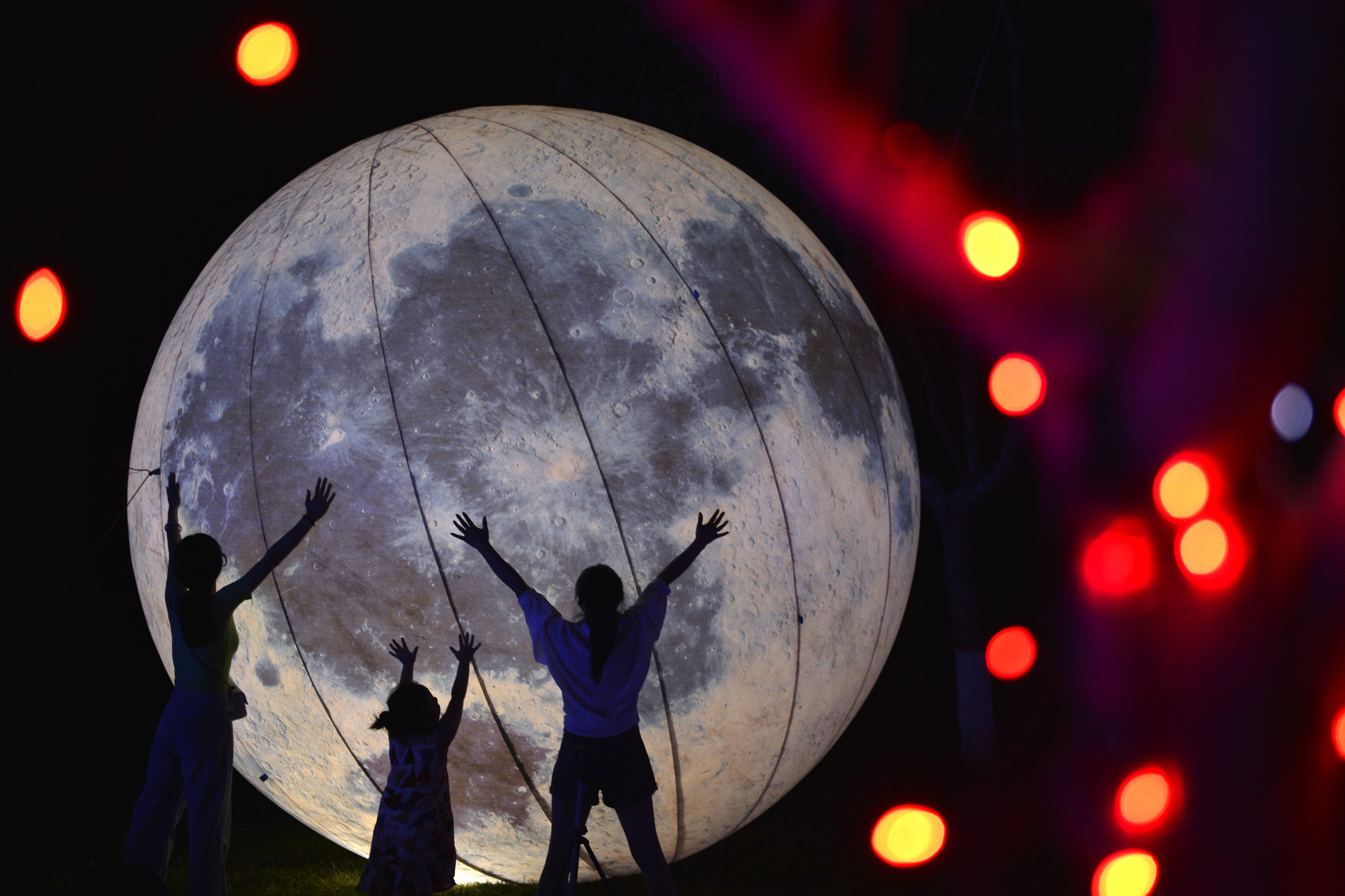 Tourists have fun at a light festival in a modern agricultural park in Shahe, north China's Hebei Province, June 28, 2019. (Xinhua/Mu Yu)