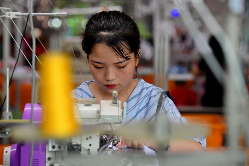 A worker sews swimsuits at a factory of the Qicaihu Garments & Weaving Co., Ltd. in Jinjiang, southeast China's Fujian Province, Aug. 14, 2019. (Xinhua/Zhang Guojun)
