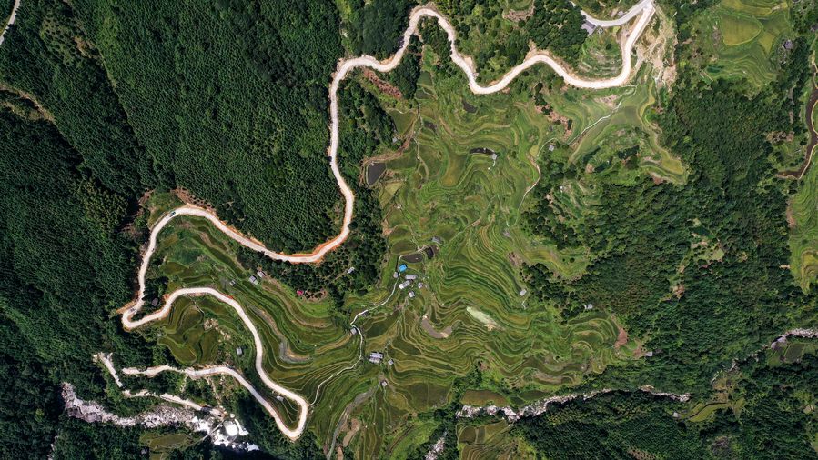 Aerial photo taken on Sept. 11, 2019 shows the autumn scenery of Sirong Township in Rongshui Miao Autonomous County, south China's Guangxi Zhuang Autonomous Region. (Xinhua/Zhang Ailin)